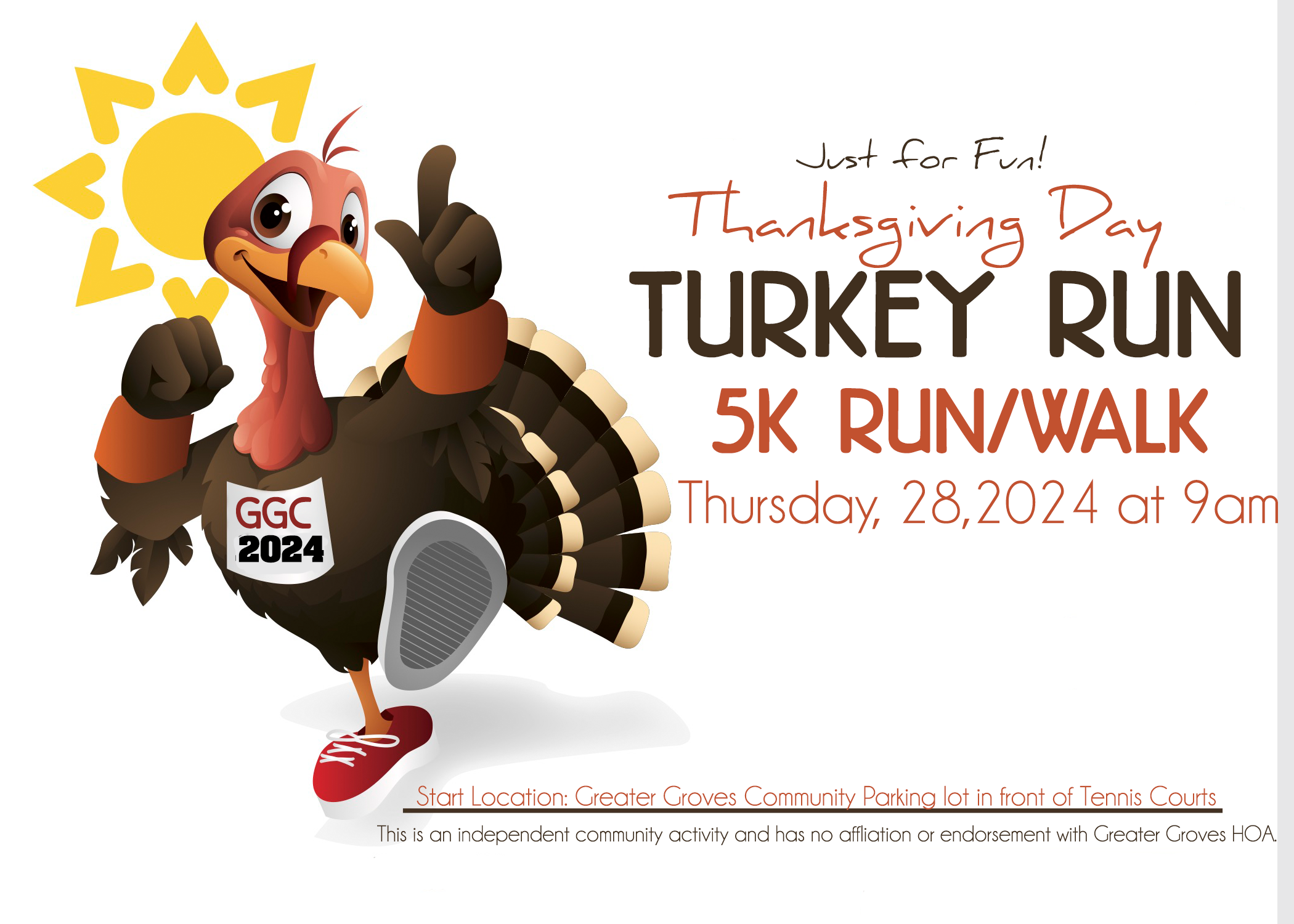 Join us Thursday, November 28, 2024, at 9am for our Annual 5k Turkey Run/Walk