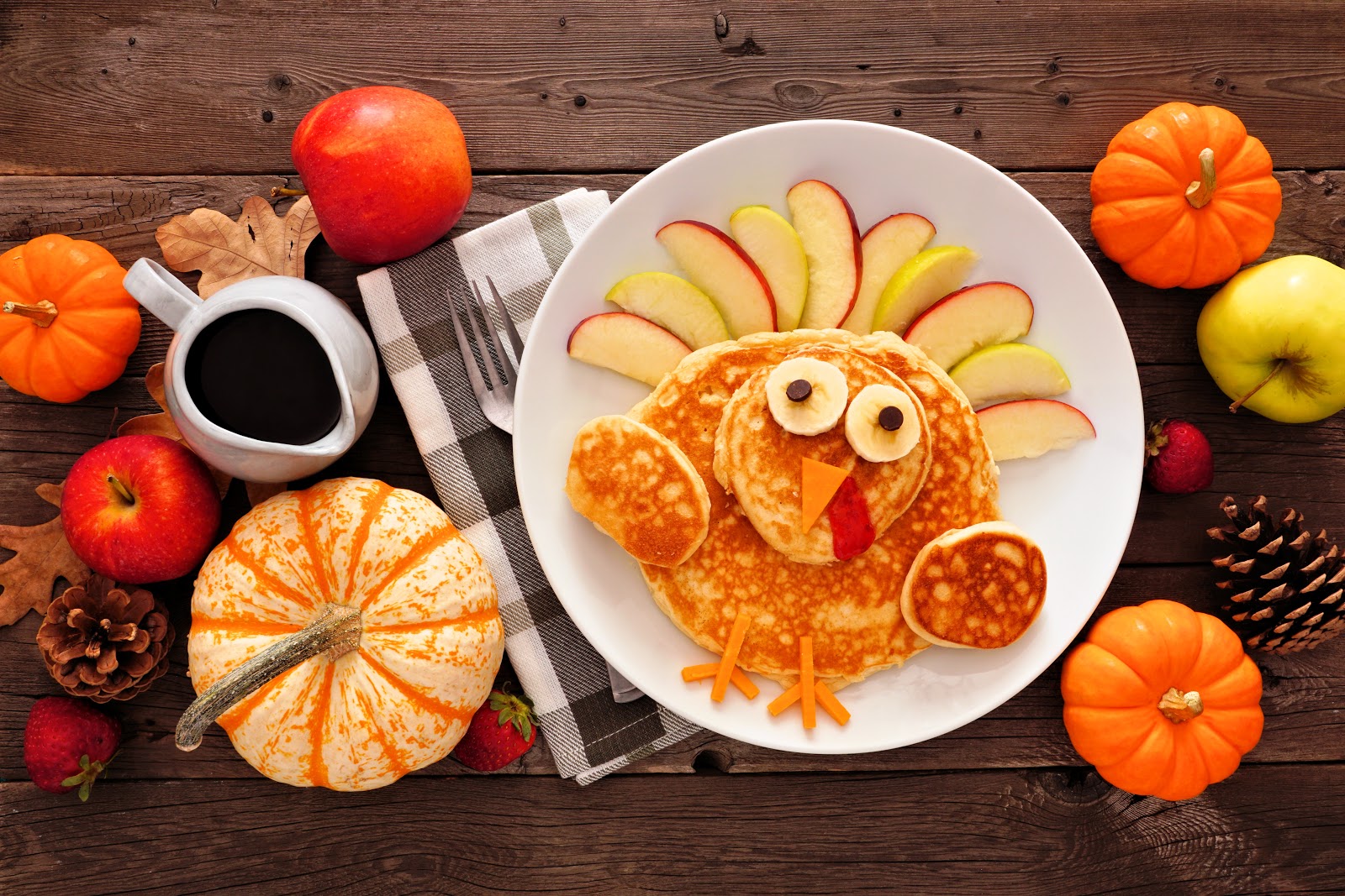 How to make a festive and delicious turkey-shaped Gobble Gobble pancakes Thanksgiving morning everyone can enjoy!